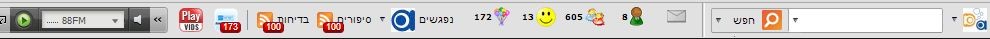 סרגל הכלים של אתר נפגשים מבוסס על טכנולוגייה של חברת conduit. הסרגל מותקן בדפדפן שלך (מסוג Internet Explorer או Google Chrome או Firefox) ומאפשר לך גישה מהירה לכל האופציות החשובות של אתר נפגשים גם כאשר לא גולשים באתר ! ניתן לראות אם יש הודעות חדשות, צפיות חדשות בכרטיס שלך, כמות המחוברים לאתר ולחדר השיחה ועוד. כמו כן ניתן לקבל עדכוני RSS של תכנים חדשים מהאתר בזמן אמת, לדוגמה: סיפורי הגולשים, בדיחות ועוד...